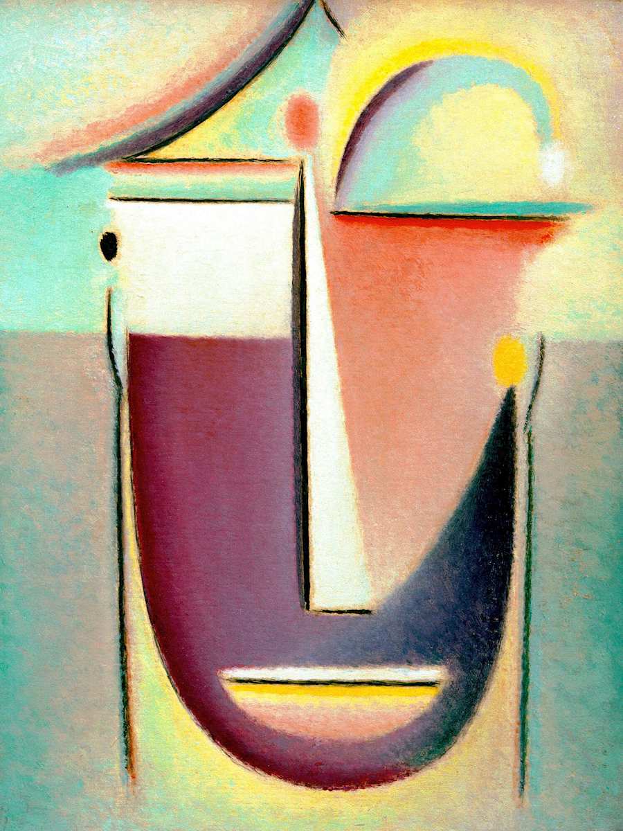 This painting is often referred to as both “Abstract Head: Primordial Form” (Abstrakter Kopf: Urform) and “Abstract Head: Archetype”.