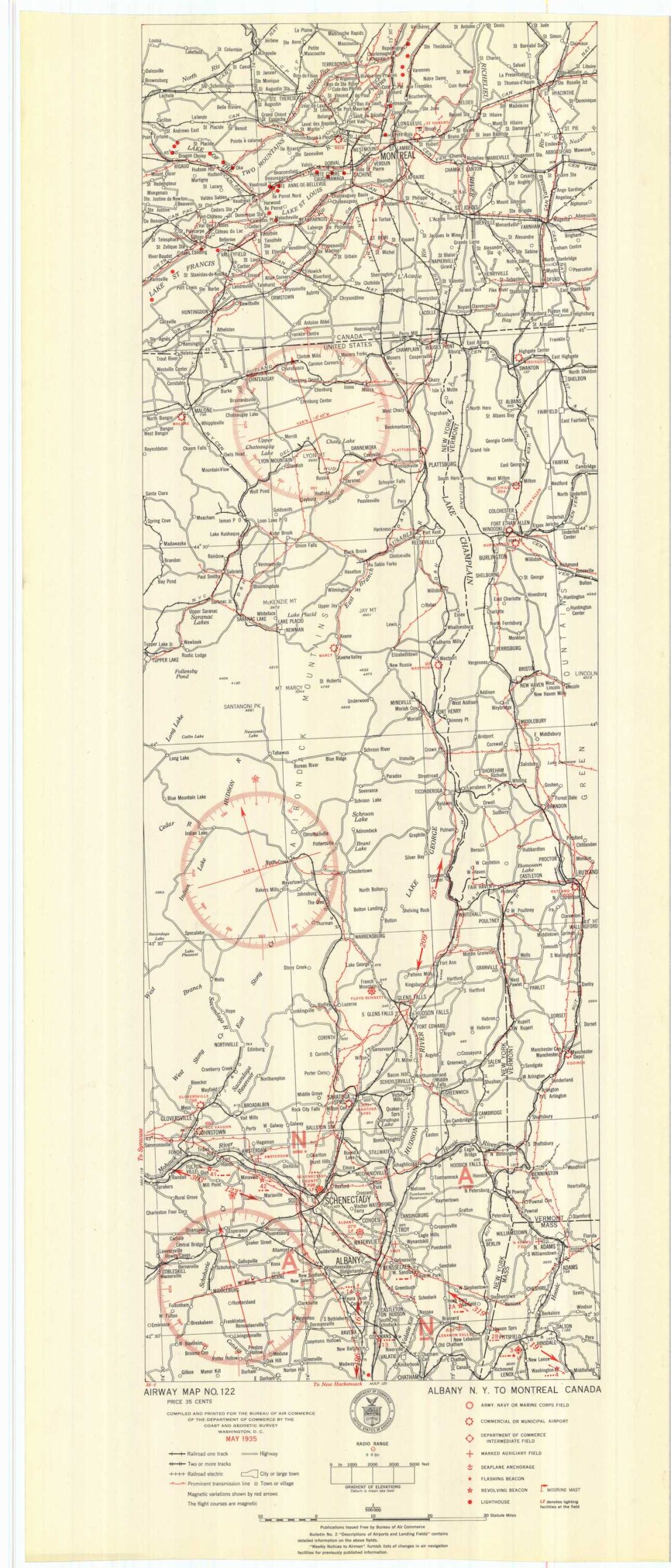 Airway Map Albany New York to Montreal Canada