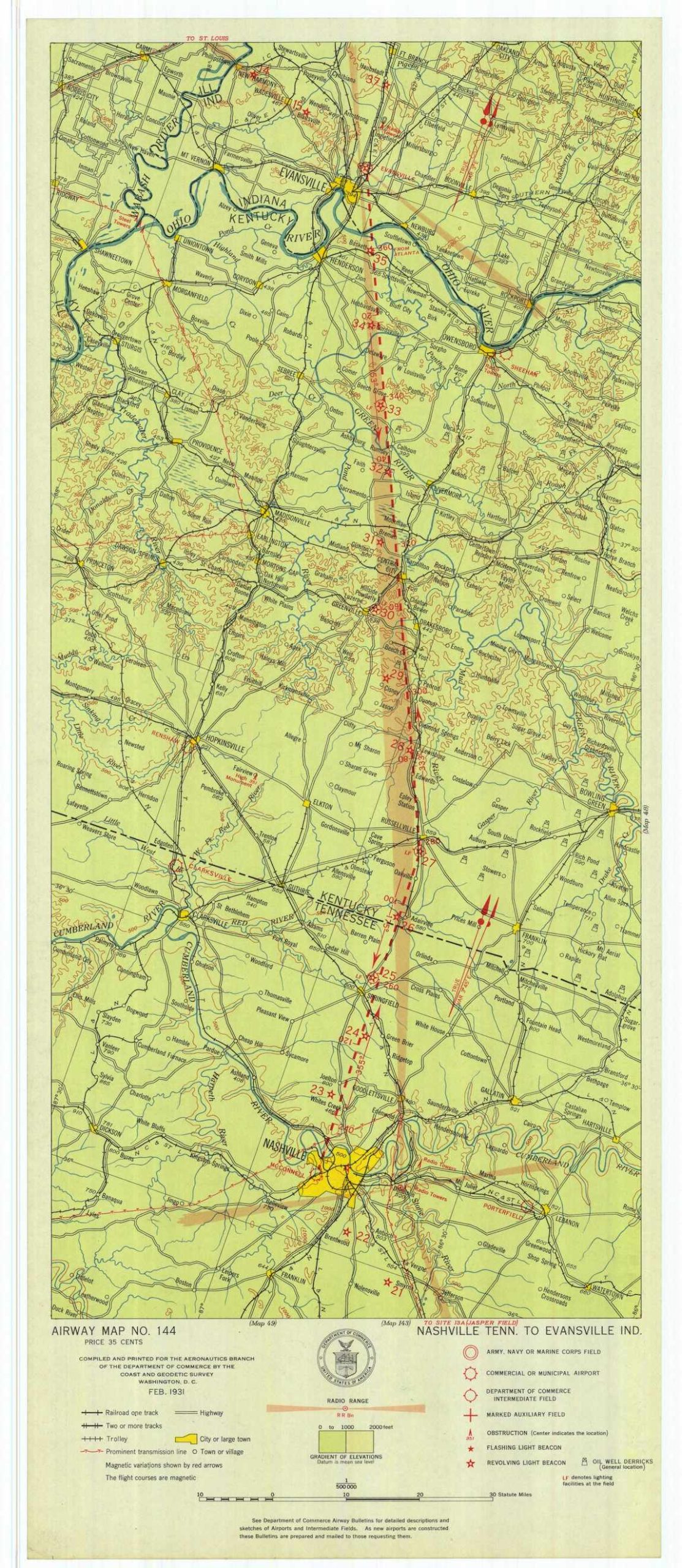 Airway Map Nashville Tennesse to Evansville Indianapolis