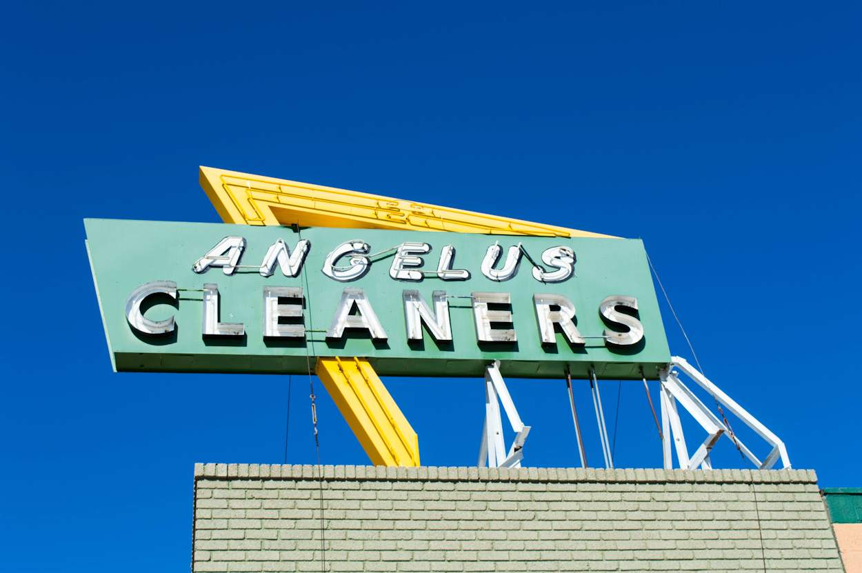Street sign of Angelus Cleaners – United States