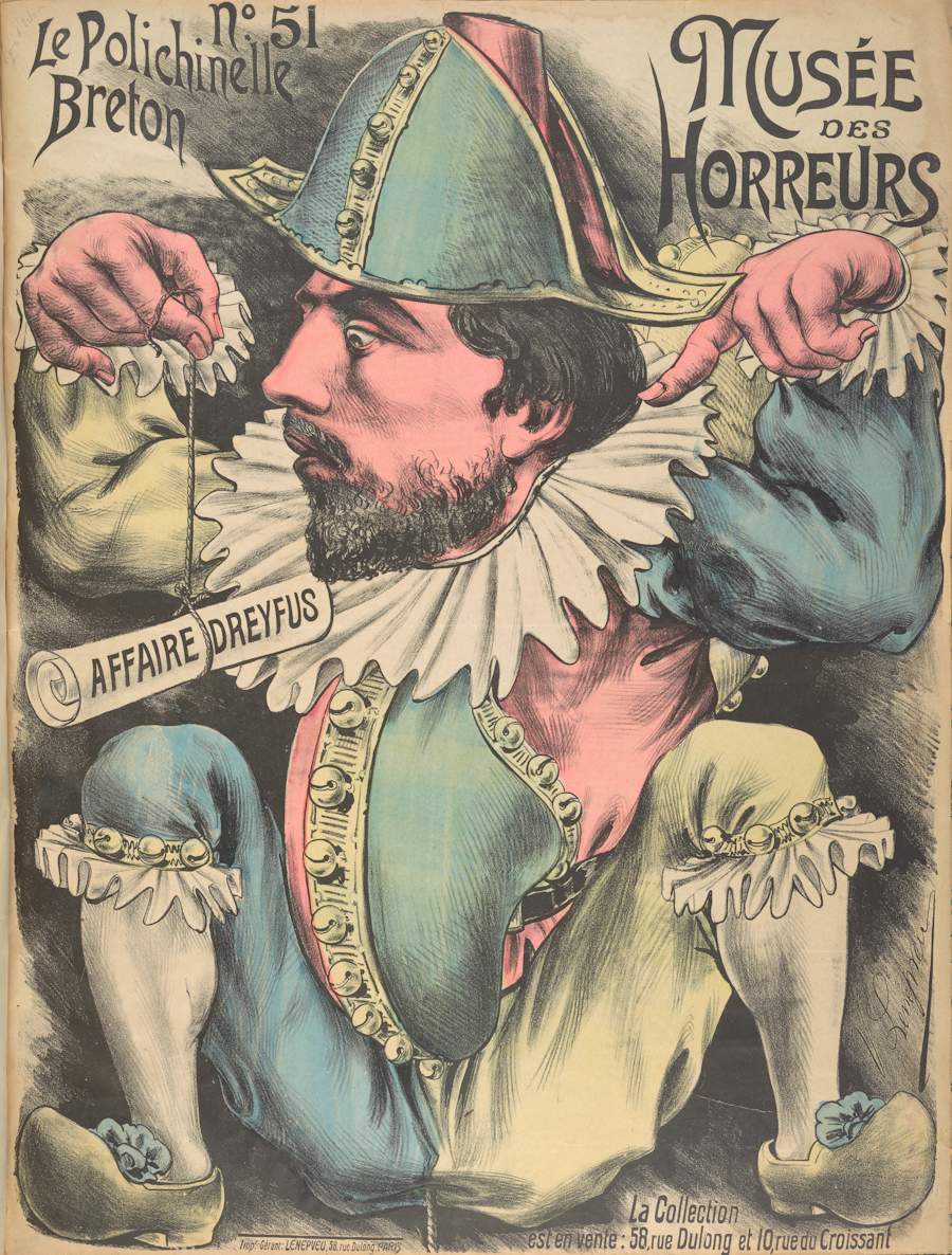 Lithograph number 51 from the “Musée des Horreurs” (Museum of Horrors) series, entitled “Le Polichinelle Breton” (The Breton Punchinello). The series consisted of 51 anti-segregationist, nationalist, and anti-Masonic propaganda posters, published in France between October 1899 and December 1900, during the Dreyfus Affair.
