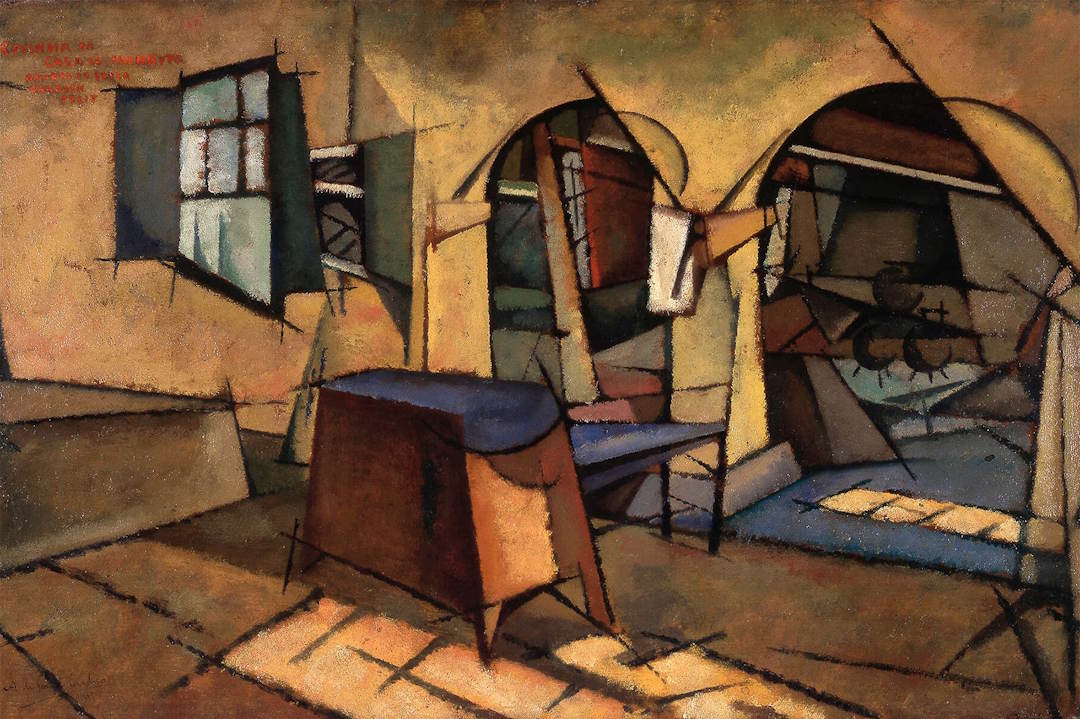 In this work, Amadeo approaches the Cubist idiom, fragmenting the image and rejecting the idea of a single point of view associated with traditional perspective representation.
