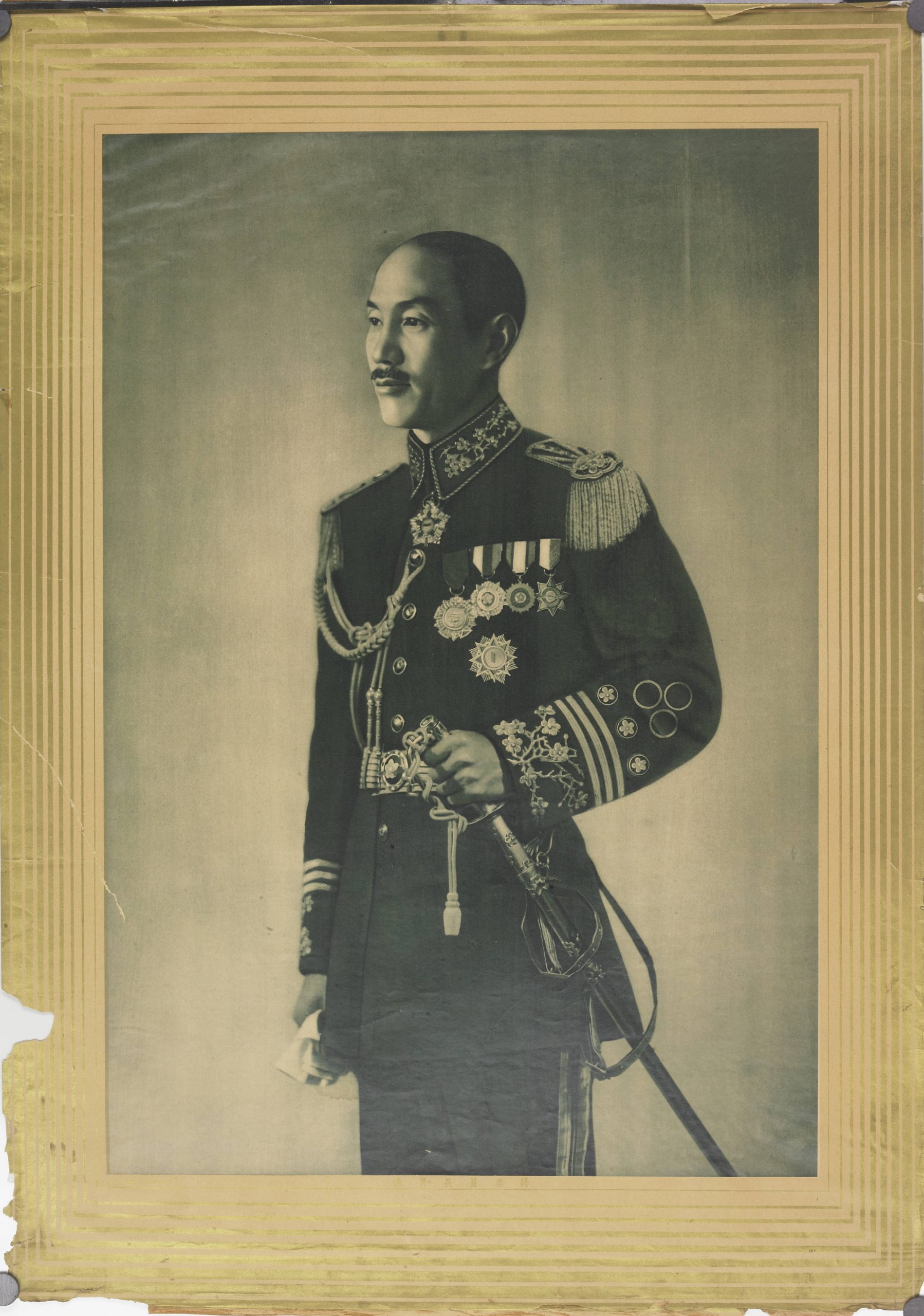 This portrait depicts Chiang Kai-shek, the Generalissimo and leader of the Kuomintang (KMT) party in China for much of the 20th century.