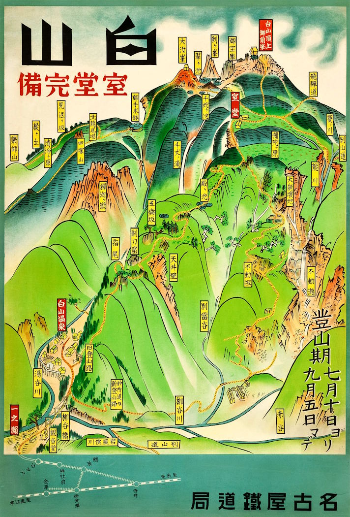 Hakusan, Ready to be Climbed (Nagoya Rail Agency, 1930s). Japanese Poster (24.75″ X 36.5″)