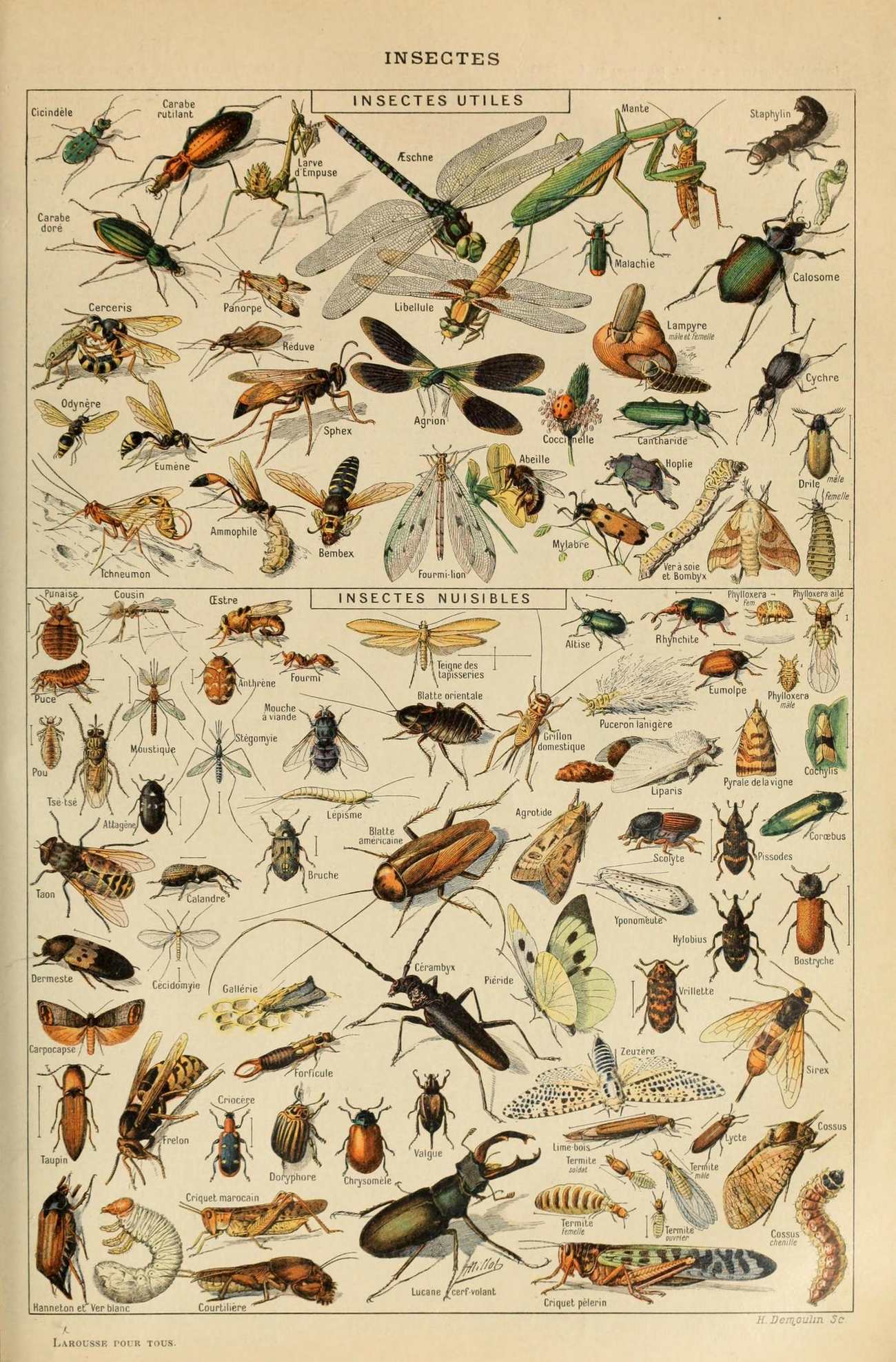 One more natural history poster of insects by Adolphe Millot. This time, however, he categorises the insects into 2 distinct groups: useful (utiles) and harmful (nuisibles).