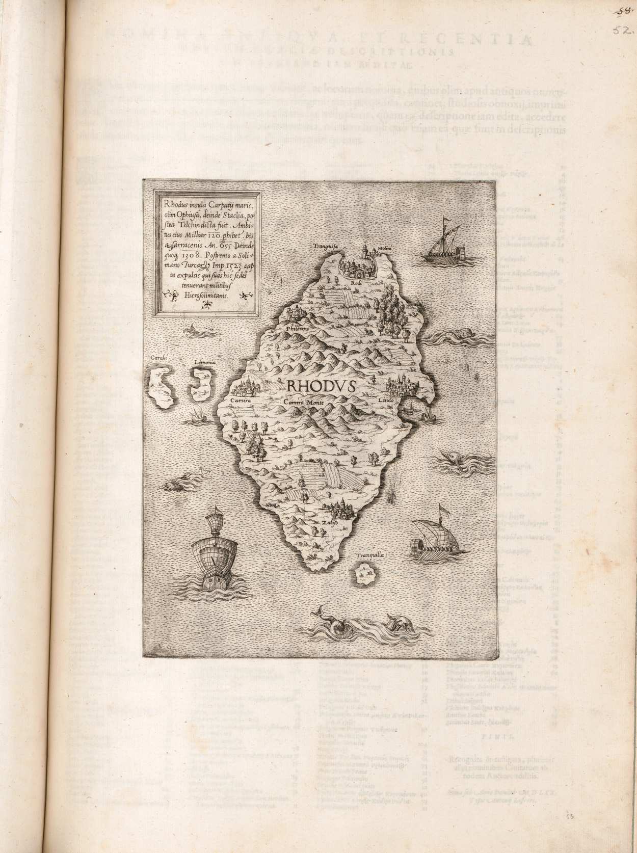 In the 16th century, Rhodus referred to the island of Rhodes in Greece, specifically its city, which was the capital of a provincial town of the Ottoman Empire after the Ottoman conquest in 1522.