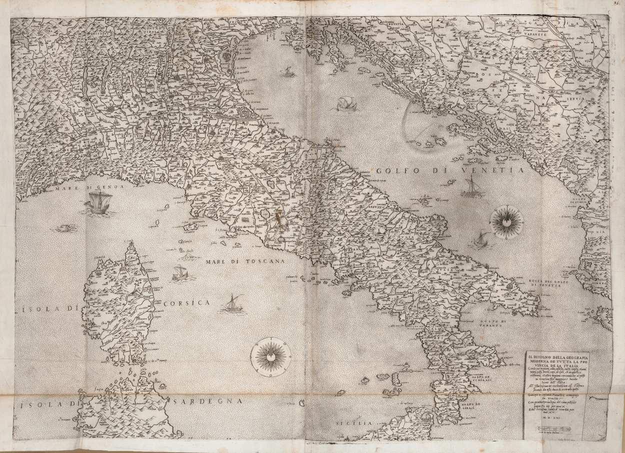 Il disegno della geografia moderna de tutta la provicia de la Italia.