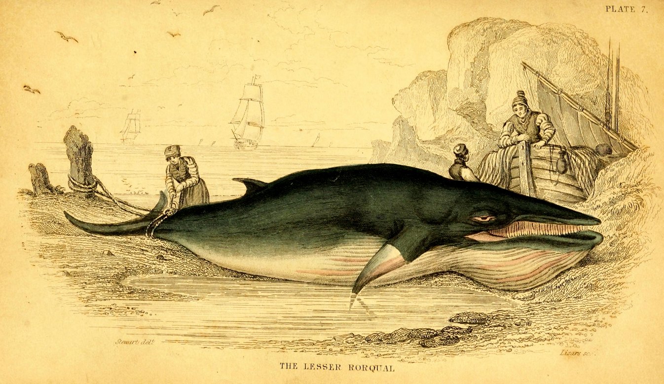 This is a whale drawing of a lesser rorqual, more commonly known as the Minke whale. Their common name originates from a Norwegian seaman named Meincke, who allegedly mistook a minke whale for a much larger blue whale.