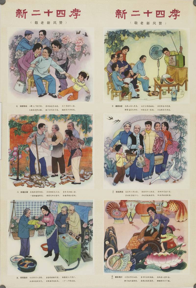 This type of poster was designed to reinterpret traditional Confucian values of respect for elders through modern socialist lenses.
