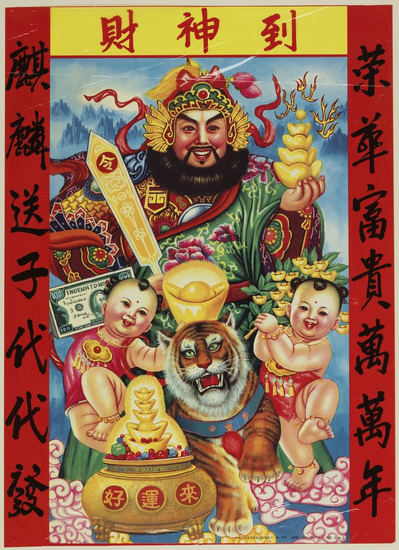 The fierce tiger at his feet is the traditional mount of this god. It represents the power to overcome financial obstacles and serves as a defensive talisman to ward off evil spirits.
