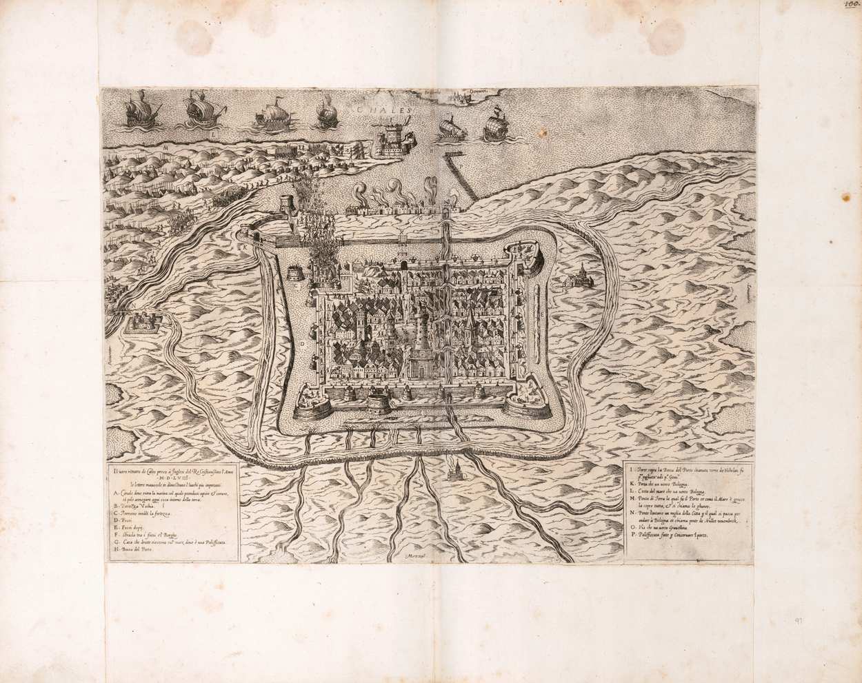 Based on what can be read on the map itself — “Il vero ritratto de Cales” — and the elements depicted, it is a historical map of the city of Cádiz, in southern Spain.