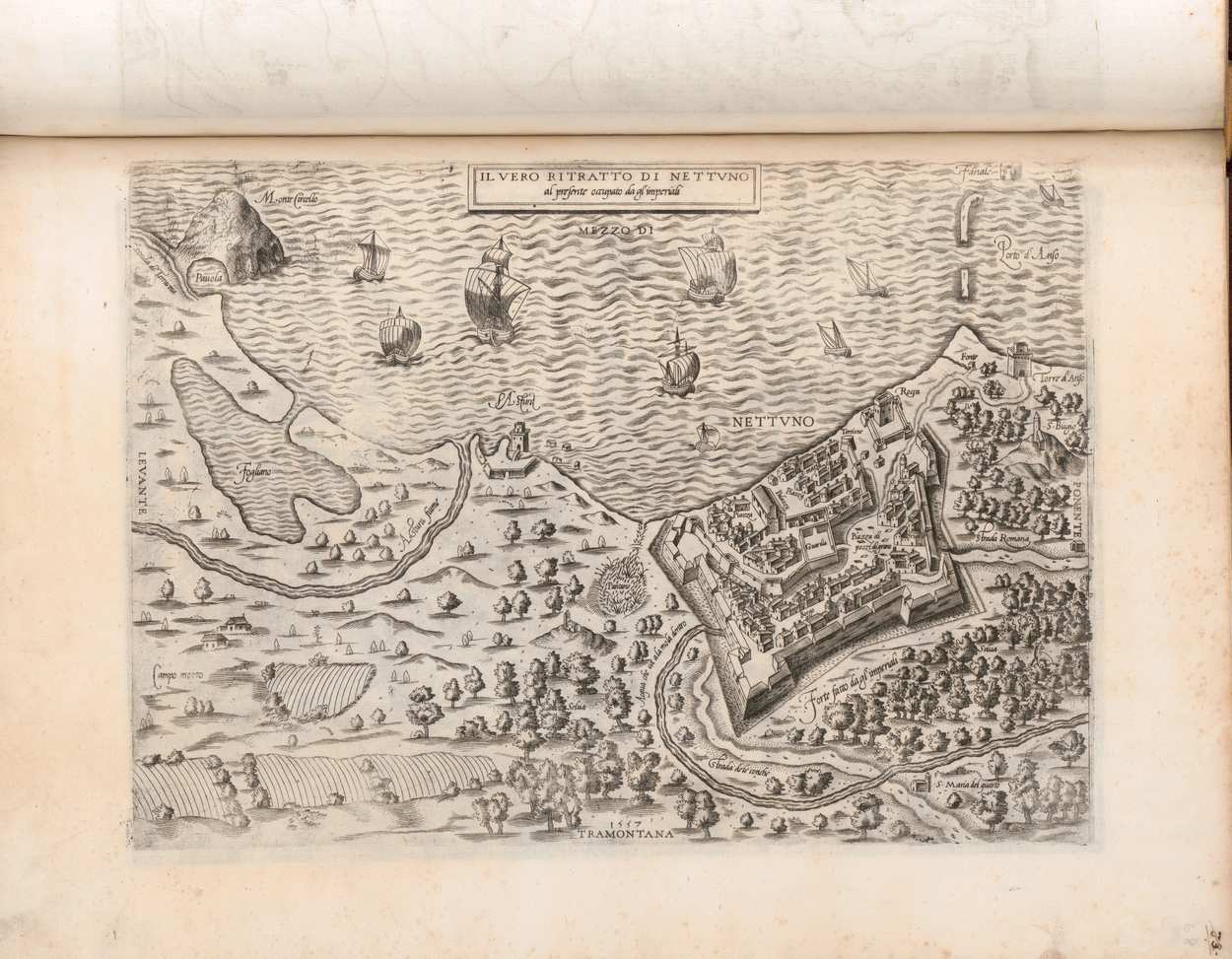 According to 16th-century maps and cartography, Nettuno would have been located on the west coast of the Italian Peninsula, south of Rome, in the Lazio region.