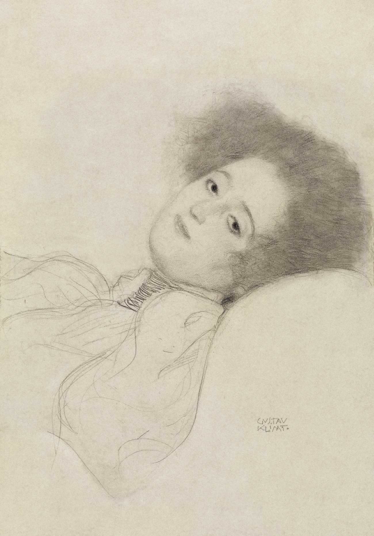 Gustav Klimt’s Portrait of a Young Woman Reclining (1897–1898) is a delicate black chalk sketch that marks a significant turning point in his artistic style. It is an example of his transition from conventional decorative painting toward the Symbolism of the Vienna Secession movement. The drawing is housed at the Getty Museum in Los Angeles.