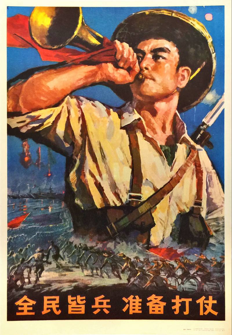 This type of art was common in Mao Zedong’s China to promote militaristic ideology and the unification of the people under a common purpose of defense and hard work.