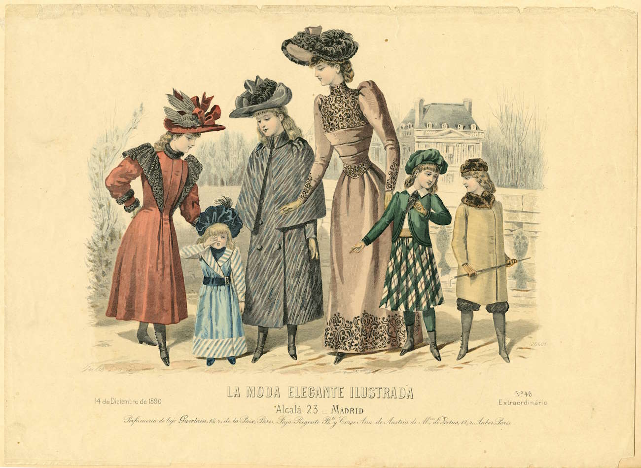 Spanish fashions for a family, Winter 1890. La Moda Elegante Ilustrada.