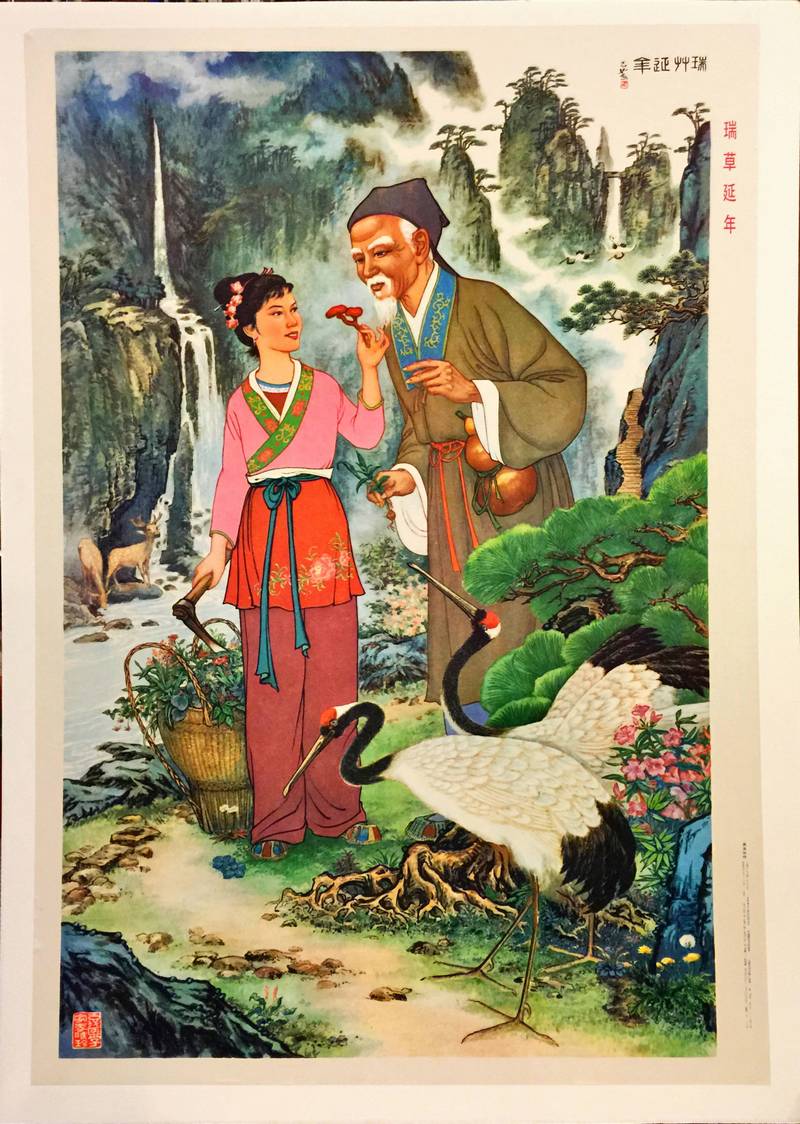 Chinese poster, titled “Tonic herbs prolong life,” published by Shanghai People’s Fine Arts Publishing House around May 1980.