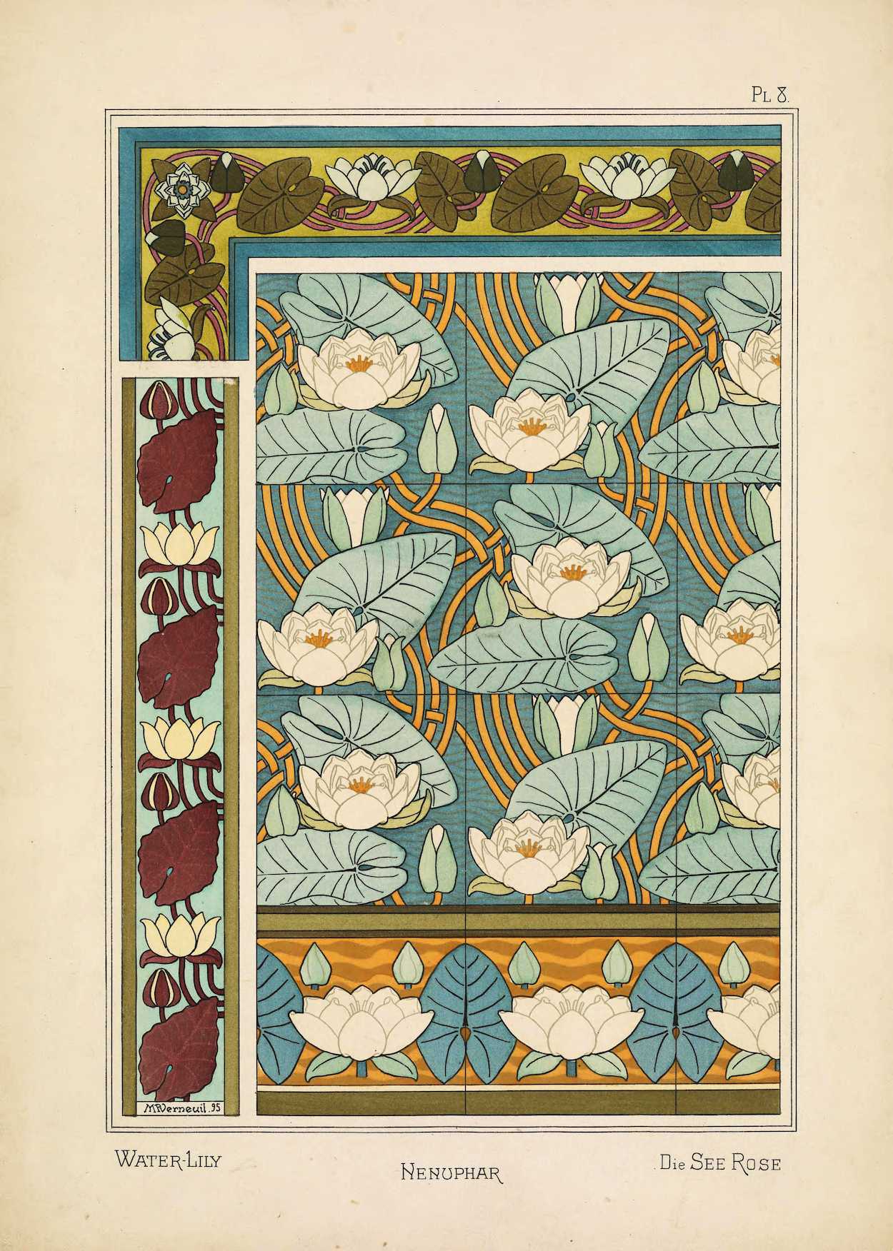 This Art Nouveau flower print of the Water Lilly is painted with the classic muted colours of the art movement. Colours such as muted greens, white, mustard and pale peacock blues.